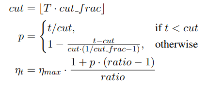 cut_frac: (learning rate을 줄이기 시작하는 iteration)/(전체 iteration(T))